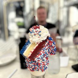 The American burger and chicken sandwich was spot on. The wagyu truffle burger was mid. The ambiance of the places gets you rocking!! Don't sit outside....not a good idea. Their milkshakes are very cool and huge!